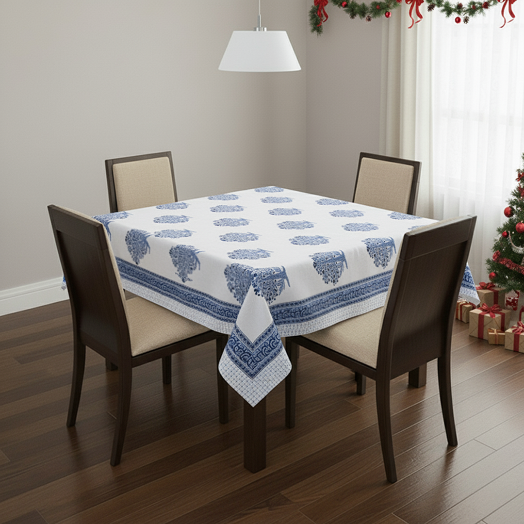 • Elegant Blue Design: Calming shades of blue on a natural cotton base bring a serene, coastal, and stylish feel to any dining space.