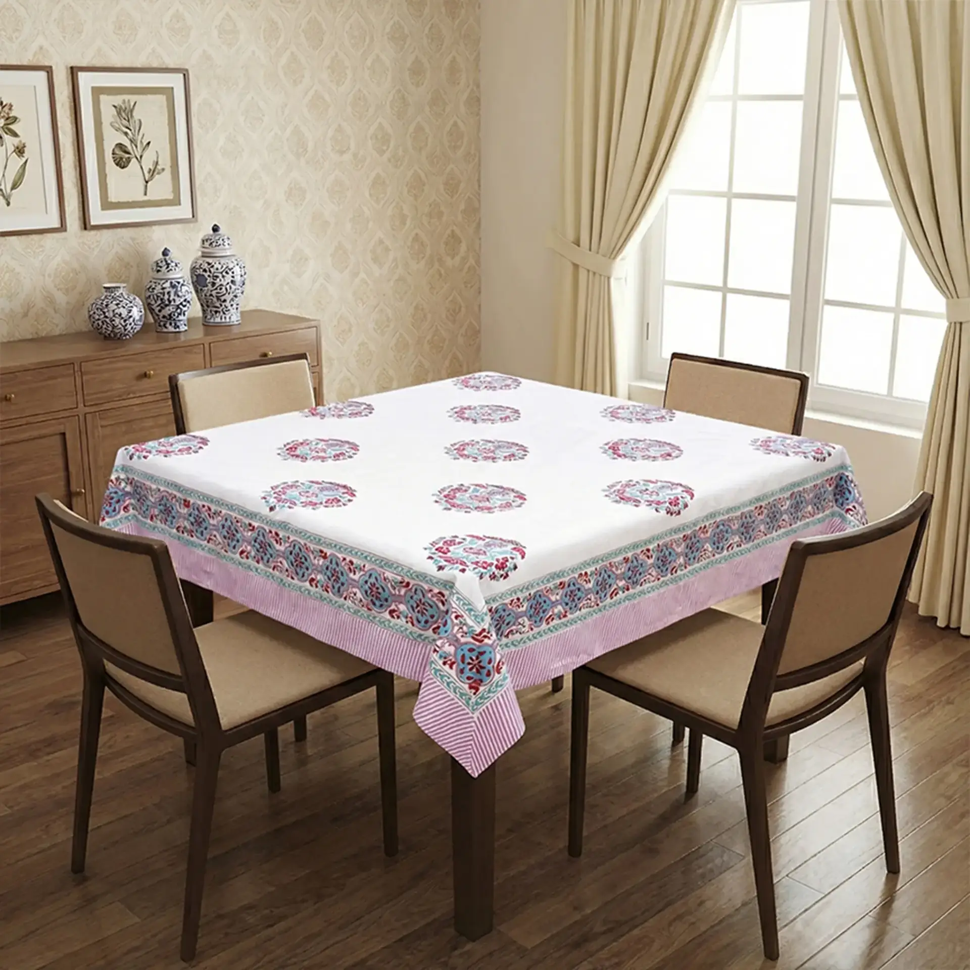 - Hand Block Printed Design: Features traditional floral medallion motifs in vibrant white, pink, and turquoise shades – each piece is uniquely handcrafted.